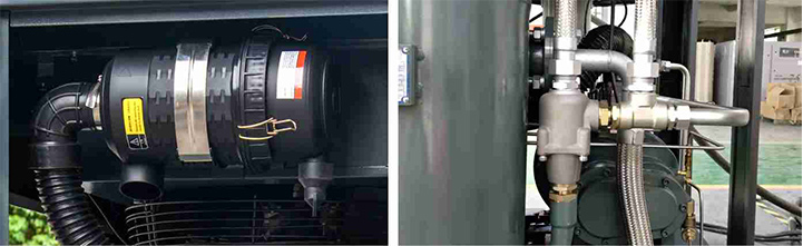 采用高效重載進氣過濾器,保證了壓縮機進氣的質量,確保主機安全,極大的提高設備的使用壽命。搭配恒溫控制閥,自動控制冷卻潤滑油溫度,使機器很容易被控制在正常的工作范圍。