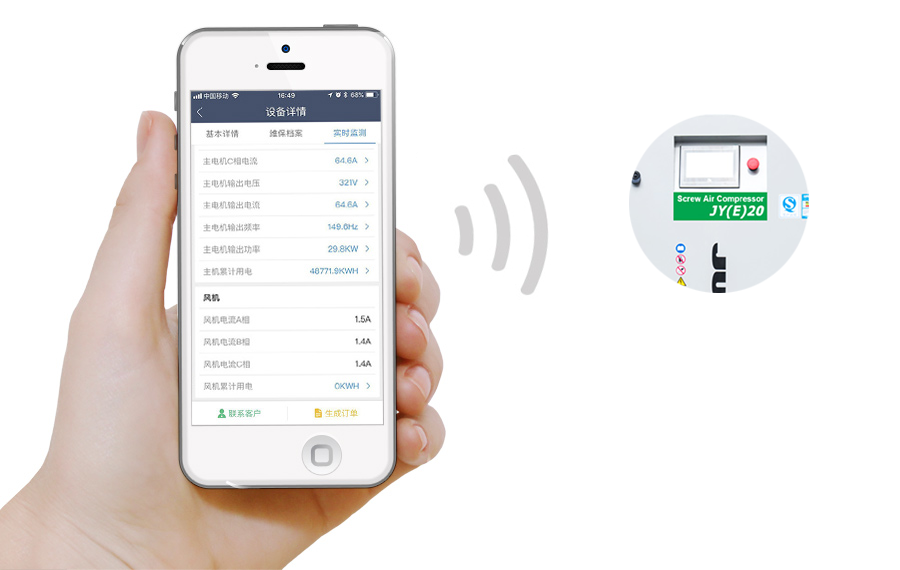 通過物聯網技術對空壓機設備進行全生命周期管理,遠程檢測,遠程管理,手機預警,數據采集等。
