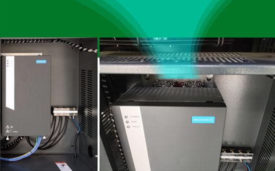 散熱系統采用大散熱器,低轉速,低噪音,散熱效果強勁;電機和電氣柜獨立風道,冷卻效果好。