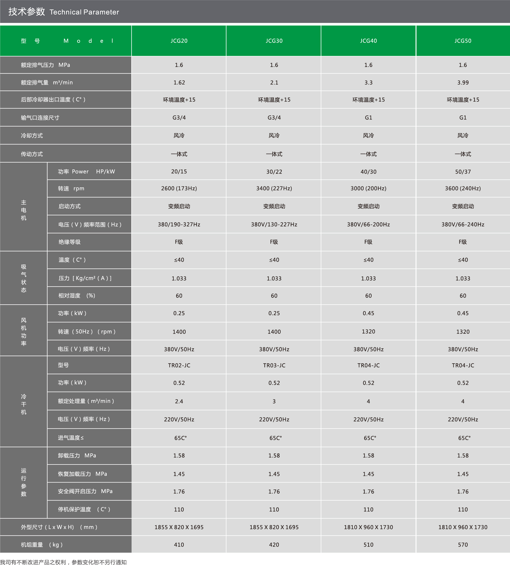 產品名稱:15kW/20HP 激光專用一體式空壓機 JCG20
