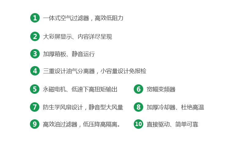 空壓機(jī)整機(jī)能效高于國(guó)家一級(jí)能效標(biāo)準(zhǔn),每產(chǎn)一立方的氣比行業(yè)大部分機(jī)器用電量少,氣量足,比行業(yè)基準(zhǔn)多10%,適應(yīng)惡劣工況條件,按24小時(shí)滿載運(yùn)行設(shè)計(jì)制造,將機(jī)械和電器完美融合。